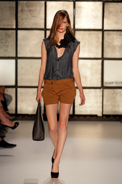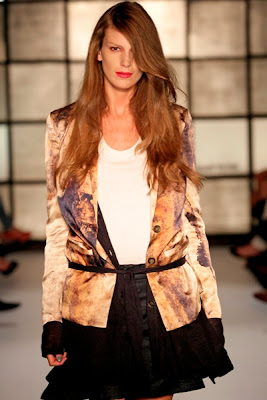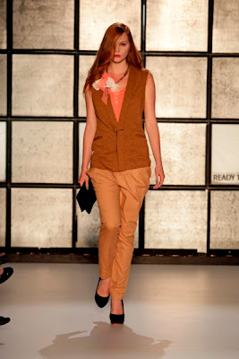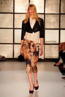 On Monday, Dutch designer Ilja Visser showed her new Ready To Fish_ collection for s/s 2011 called ‘Opposites attract’. And the show really was all about contrasts; from really feminine clothes to some androgynous looks and from prints to nudes to dark colors. The collection has elegant silk tops and dresses combined with tight cut pants and assymmetrical jackets. I love how the trendy clothes were made out of carefully picked fabrics that made them look very comfortable.