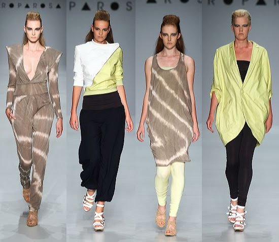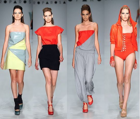 Last Sunday, Project Catwalk 2010 winner Roos van der Kamp showed her third Roparosa collection ‘Come out and play’. Being able to show her collection at AIFW was one of the prizes of the competition. Roos searched for inspiration in forms and materials that are used in functional sportswear and she aims for comfortable power dressing: playful, independent and feminine. The SS11 collection is a sequel of earlier collections ‘Catch as Catch Can part I and II.