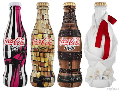 Gianfranco Ferré is the latest fashion house to create some new looks for the famous Coca-Cola bottle. Tommaso and Roberto, Creative Directors of Gianfranco Ferré, designed 4 special edition bottles for the ‘Tribute to Fashion’ charity event of Coca-Cola Italy. Previously, the beverage brand also turned to Manolo Blahnik and Karl Lagerfeld to create limited edition bottles.
