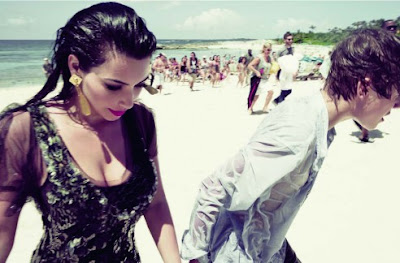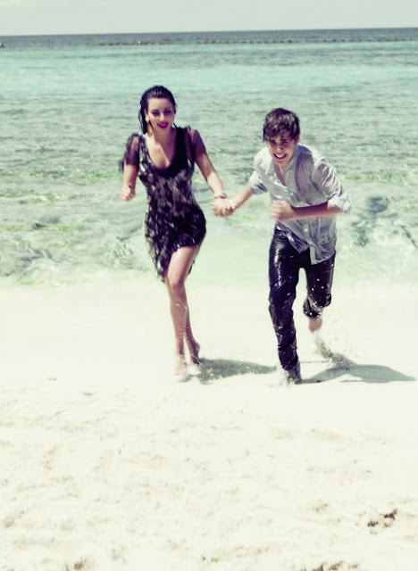 Kim Kardashian loves getting back on the Justin Bieber fans. De two did a romantic couples shoot for Elle Magazine in the Bahamas. A while ago, Kim received multipe threats because Bieber twittered (as a joke) that she was his girlfriend. Beliebers (as the Bieber fans are called) could not appreciate this and sent Kim angry letters and even death threats! For Kim this meant payback time! Watch the video after the jump break to learn more about the shoot..
