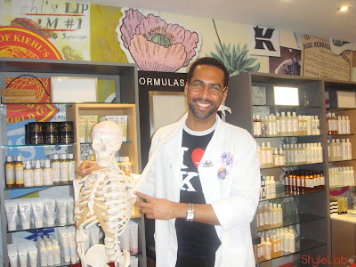 Ibris at the consulation table sharing his incredible Kiehl’s knowledge with another blogger.