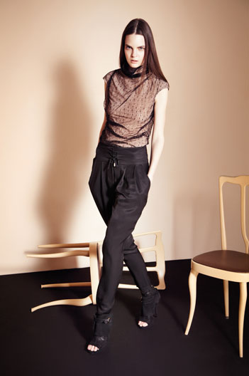 Previously you’ve seen the catwalkpictures of the Patrizia Pepe collection. And that was not all! This time I’ll show you the lookbookpictures of the Patrizia Pepe Evening line for fall/winter 2010. This collection features sexy body-hugging dresses and blouses using shiny fabrics, fur coats, leather, lace, comfy knits, gold sequins and gorgeous trousers. If you’re looking for bright colors this season, you won’t find them here. The key colors are black, navy blue, plum, grey and beige which guarantee a sophisticated eveninglook for fall/winter.